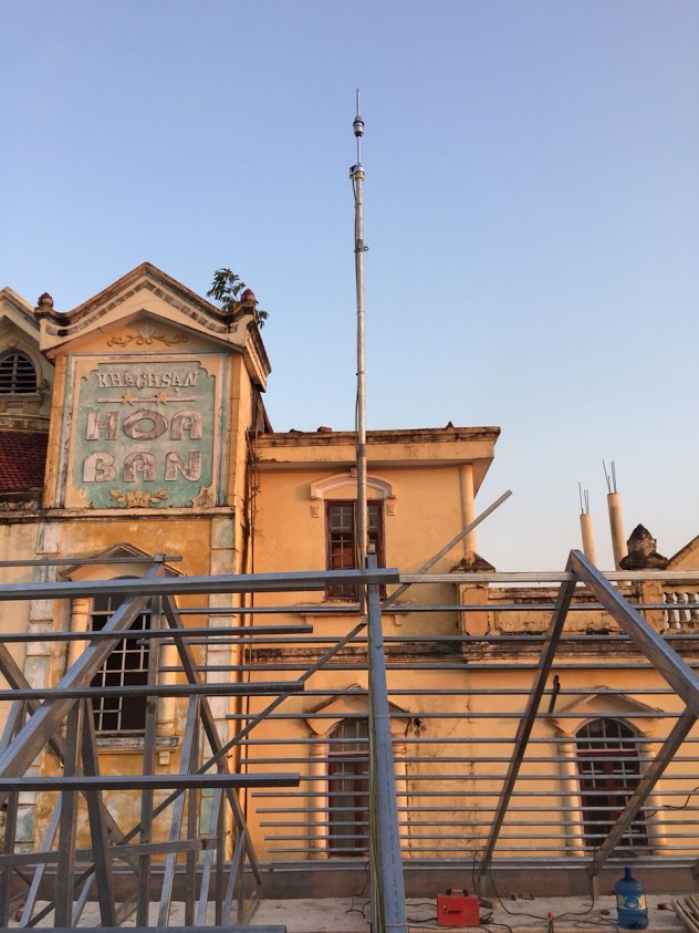 Gia công trụ đỡ kim thu sét, lắp đặt trụ và kim thu sét theo đúng bản vẽ thiết kế thi công.