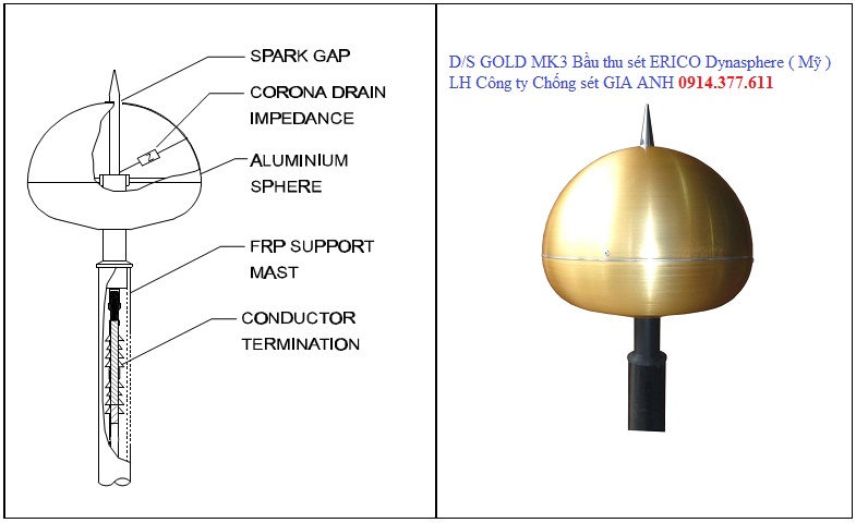 – Dây dẫn sét nối từ cột chống sét xuống đất được làm từ dây đồng trần hay các loại cáp thoát sét chống nhiễu (Cáp ERICORE của hãng ERICO).